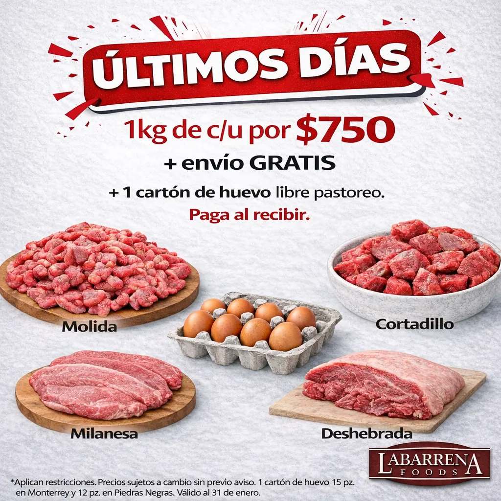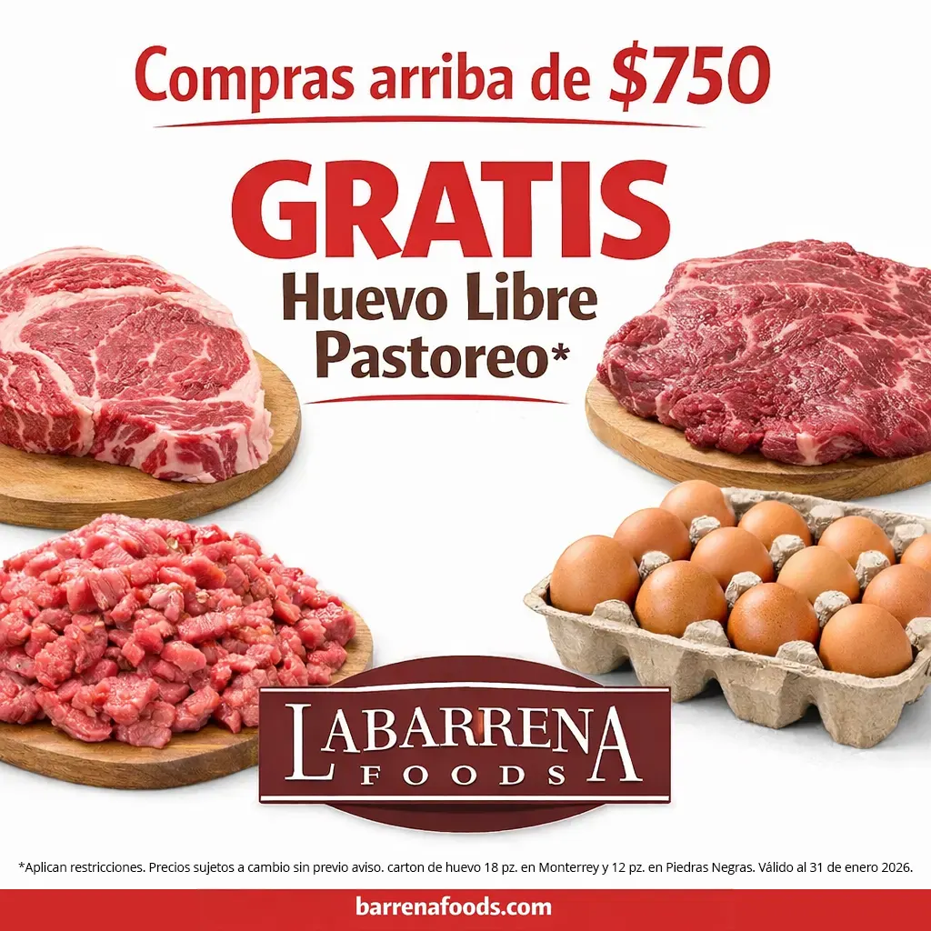 *Aplican restricciones. Precios sujetos a cambio sin previo aviso, carton de huevo 15 pz. en Monterrey y 12 pz. en Piedras Negras. 1 promoción por compra, no se pueden mezclar. Vigencia 31 enero, 2026.